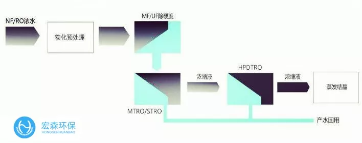 宏森作為一家專注于膜工藝處理垃圾滲濾液的成熟的企業(yè),擁有豐富的DTRO膜應用經驗,擁有超過60個DTRO項目業(yè)績,經過與多家滲濾液工程公司和設計院聯(lián)合開發(fā),成功驗證并實施了使用DTRO膜技術對NF-RO進行減量化的工藝。該工藝簡單可靠,無需預處理,不產生無極污泥。