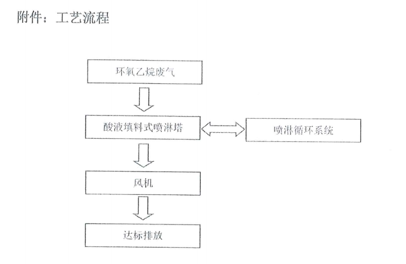 廢氣經(jīng)過噴淋塔,把灰塵和顆粒狀的給排除掉,以免堵塞設備造成損耗。然后其他的廢氣經(jīng)過催化的化學作用下,把環(huán)氧乙烷給消化掉。剩余的干凈廢氣再經(jīng)過風機排放出去。